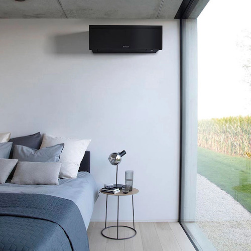 Daikin Emura je mimořádnou kombinací ikonického designu a dokonalého inženýrství s elegantní matnou černou povrchovou úpravou, která se hodí do každého interiéru.